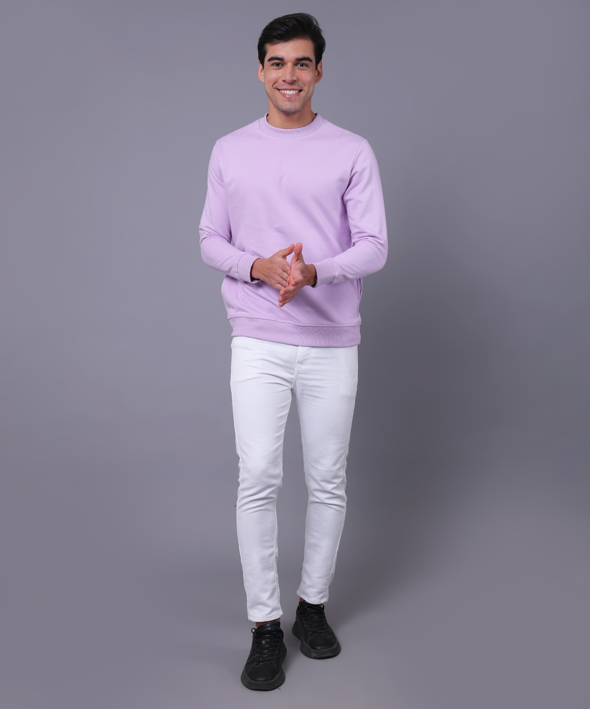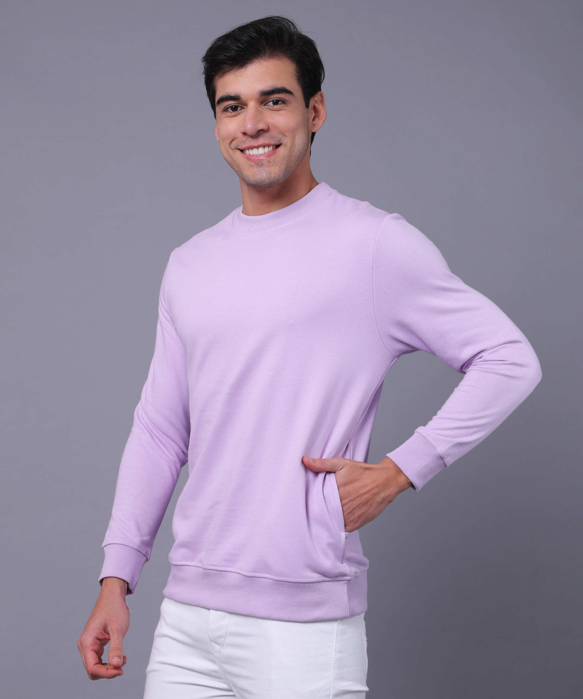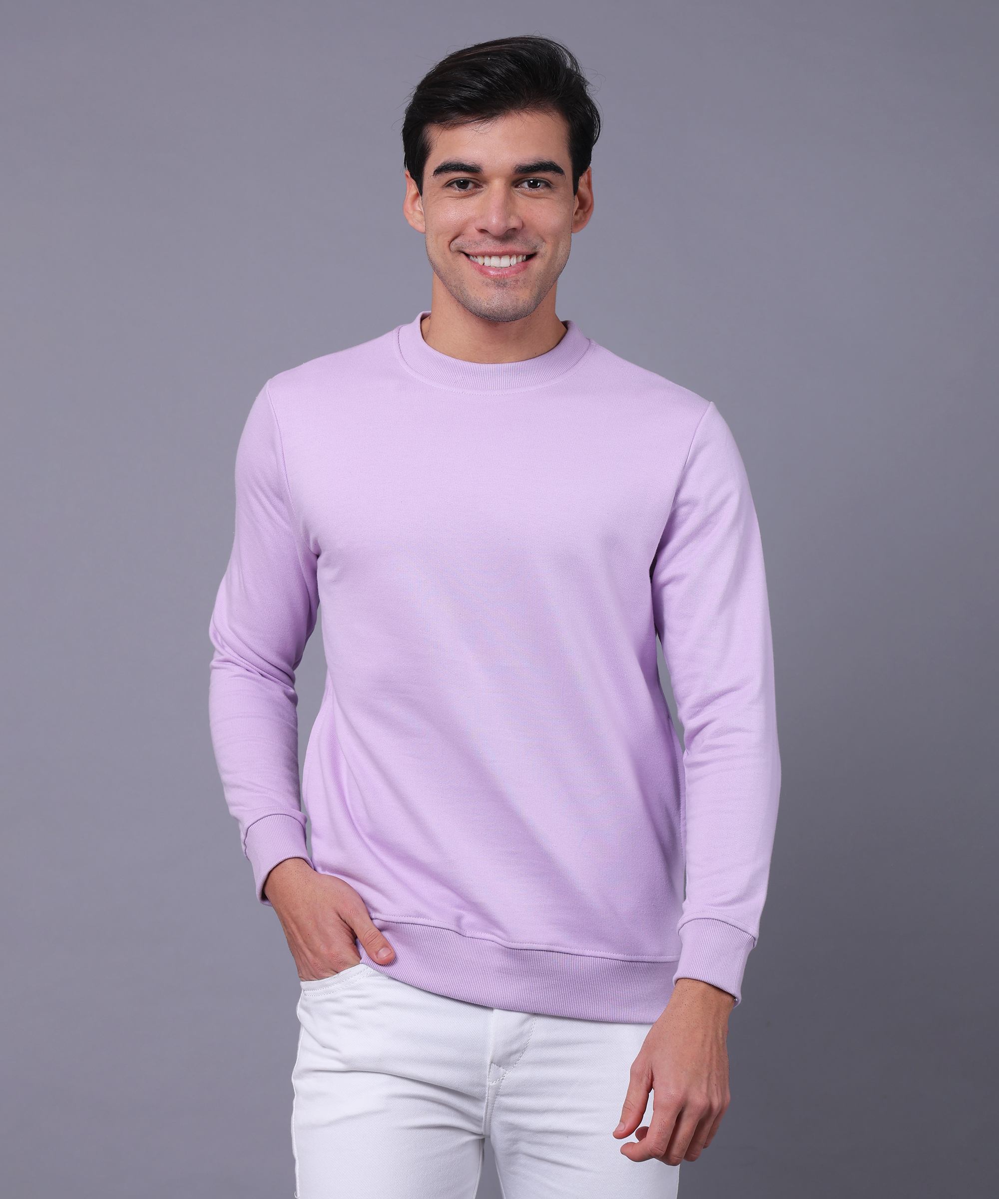 This solid casual wear sweatshirt is the perfect blend of style and comfort for the winter season. Made from 100% cotton, it offers a soft, breathable exterior, while the fleece lining inside provides extra warmth and coziness. With full sleeves to protect you from the chill, it's a versatile and practical choice for everyday wear. Whether you're lounging at home or heading out, this sweatshirt ensures you stay comfortable and snug all day long.