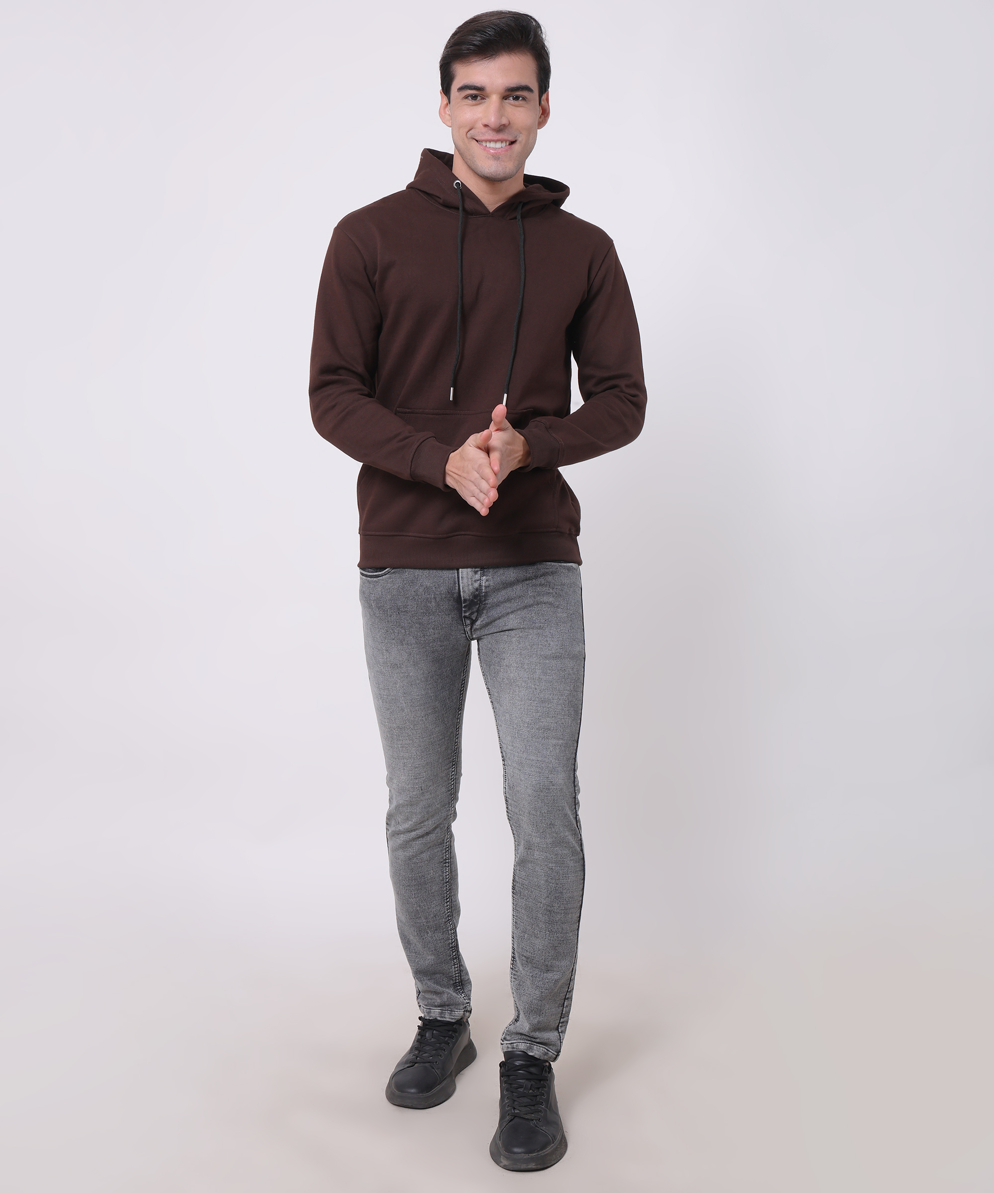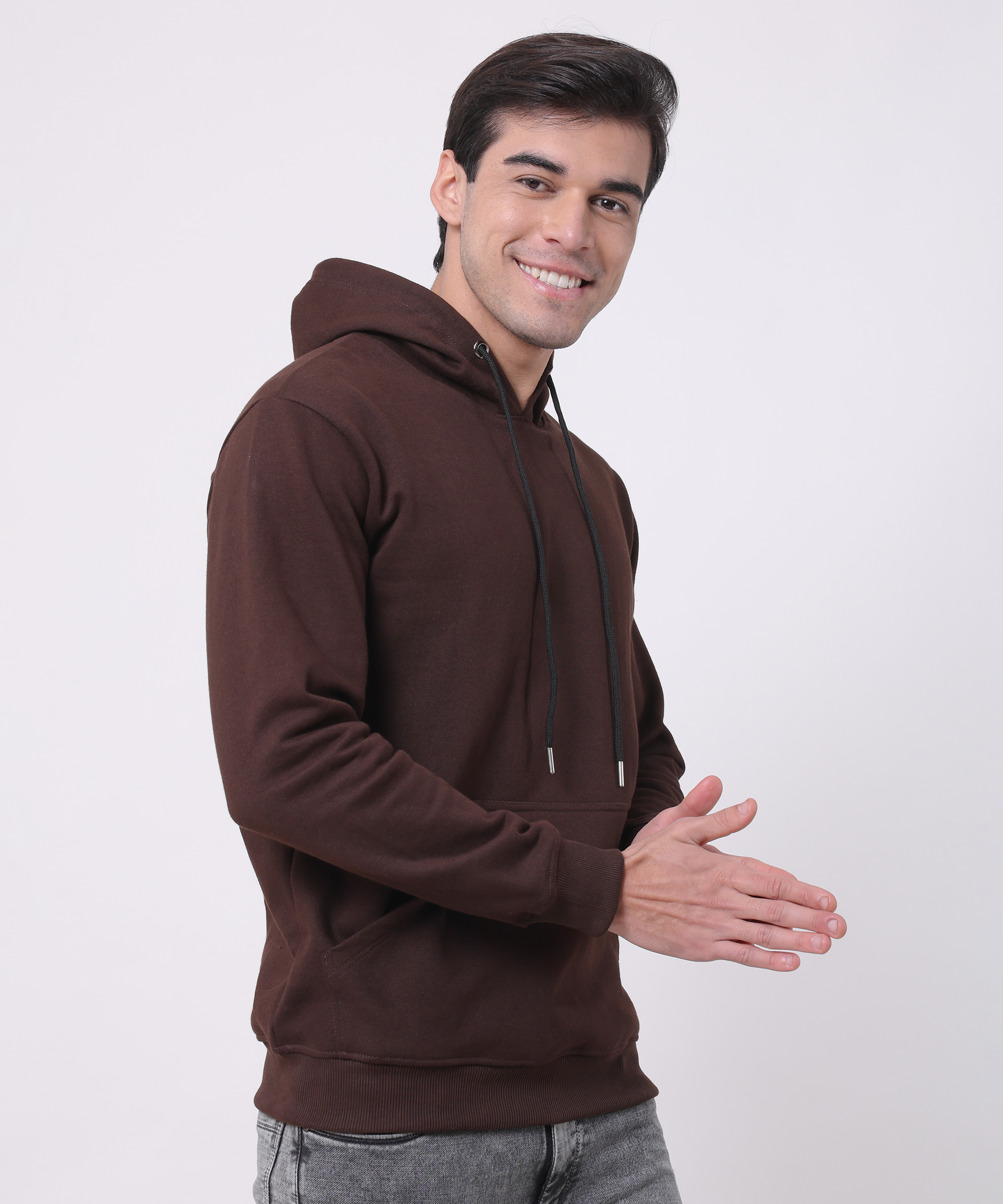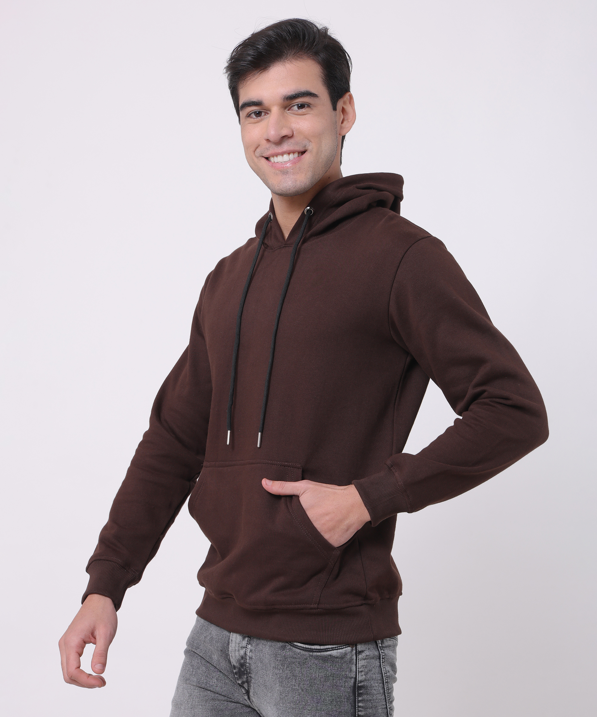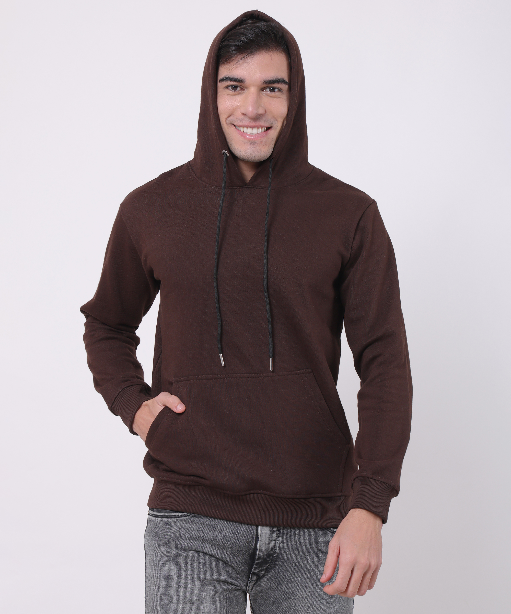 Hoodie is made from a 100% cotton blend. Relaxed fit with a lined, drawstring hood, long sleeves, kangaroo pocket and ribbing at the cuffs and hem. Soft brushed Fleece inside.