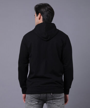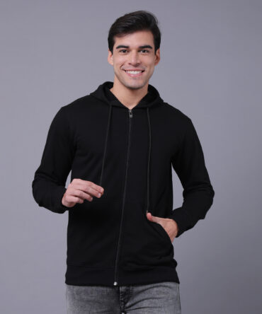 Men’s Black Casual Zip-Up Hoodie with Front Pockets