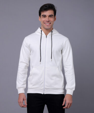 Men’s White Casual Zip-Up Hoodie with Front Pockets